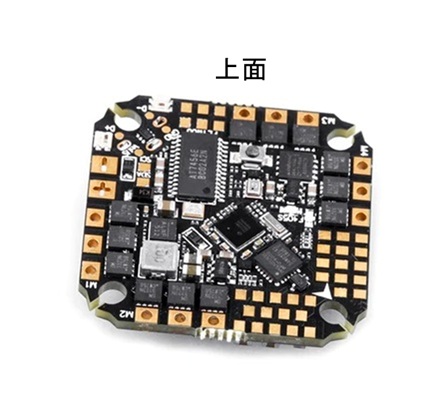 100g未満のFPVドローンを実現には、重量制限によりオールインワン(AIO)タイプのフライトコントローラが必須となります。すなわち、上記MPUの他にドローン制御に無くてはならないIMU(ジャイロ・加速度)チップ、バロメータチップ、ESCコントローラ、モータドライバー、複数電圧電源回路などが同一基板上に実装されたフライトコントローラです。